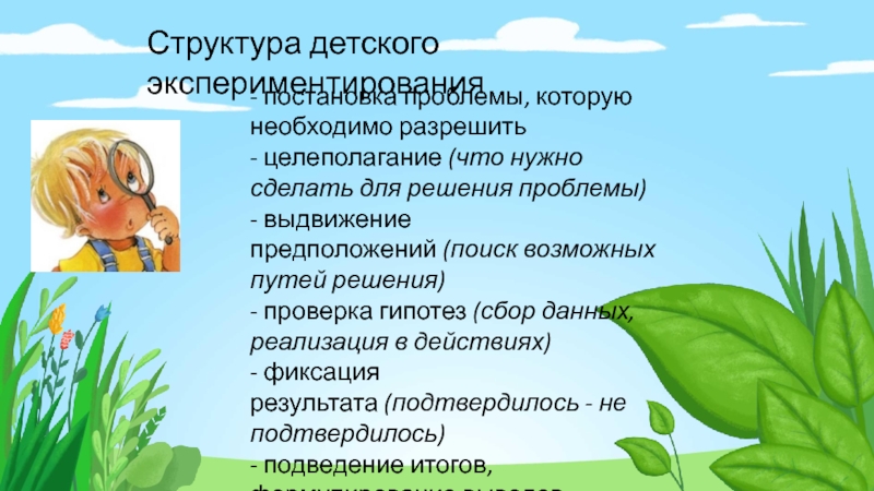 Слайд 3Структура детского экспериментирования