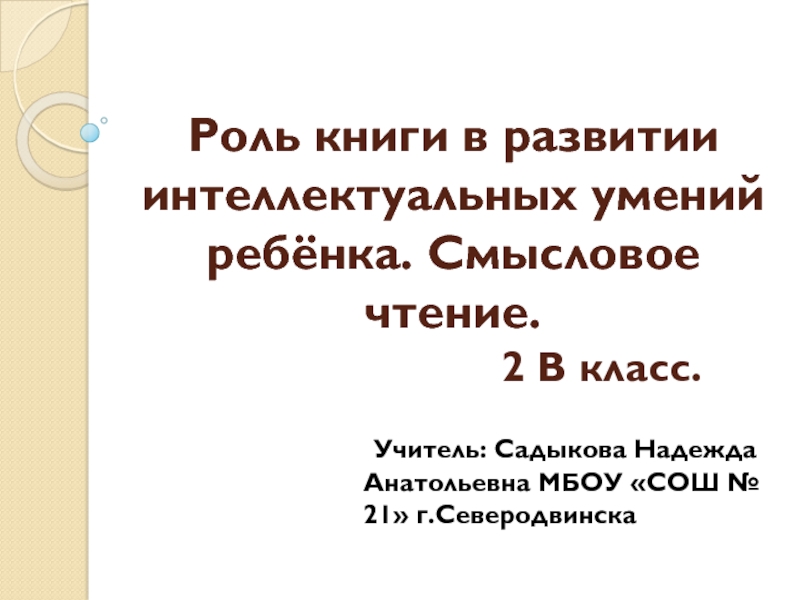 Учитель: Садыкова Надежда Анатольевна МБОУ «СОШ № 21» г.Северодвинска