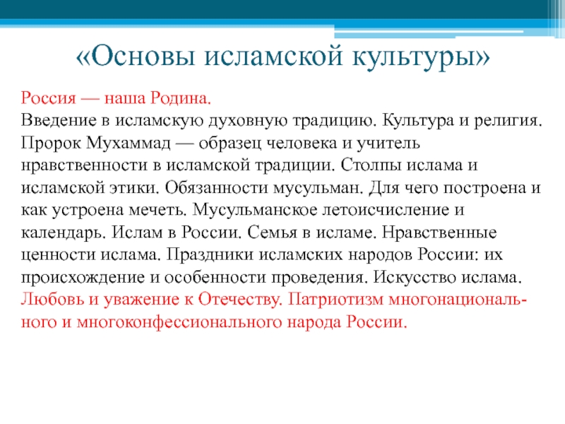 Слайд 11«Основы исламской культуры»