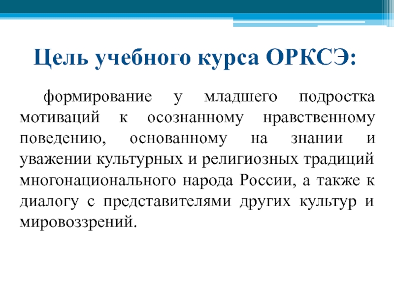 Слайд 5Цель учебного курса ОРКСЭ: