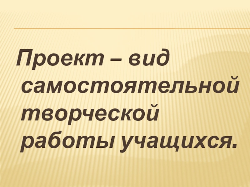Слайд 2 Проект – вид самостоятельной творческой работы учащихся.