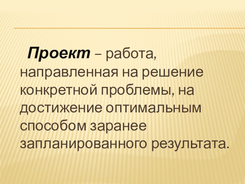 Проект – работа, направленная на решение конкретной проблемы, на достижение оптимальным способом заранее