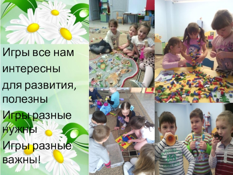 Игры все наминтересныдля развития, полезныИгры разные нужны Игры разные важны!