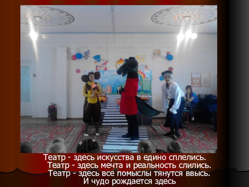 Театр - здесь искусства в едино сплелись. Театр - здесь мечта и реальность слились. Театр - здесь