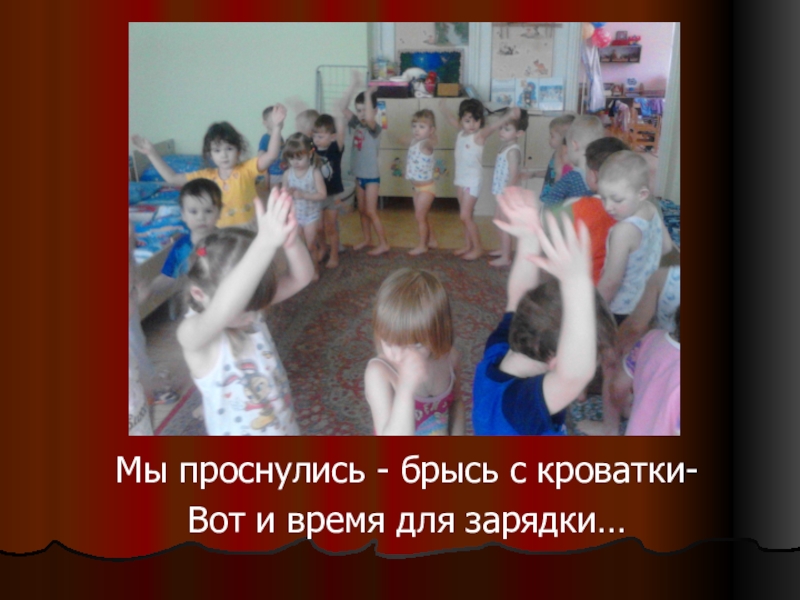 Мы проснулись - брысь с кроватки-Вот и время для зарядки…