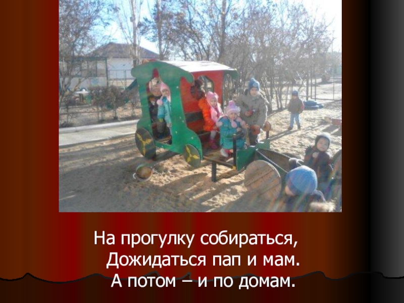 Слайд 11На прогулку собираться, Дожидаться пап и мам. А потом – и по домам.