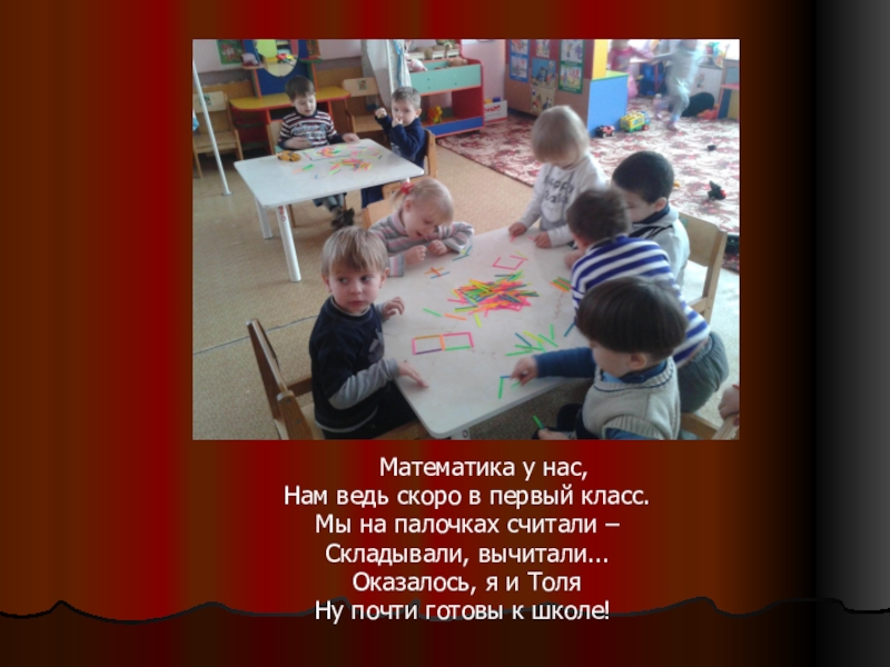 Математика у нас, Нам ведь скоро в первый класс. Мы на палочках считали – Складывали, вычитали... Оказалось, я и ТоляНу