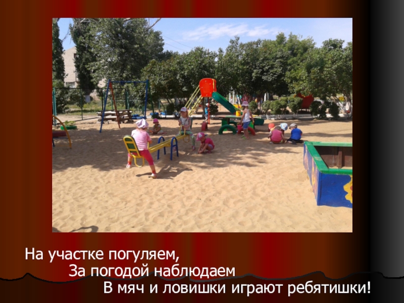 Слайд 6На участке погуляем,  За погодой наблюдаем