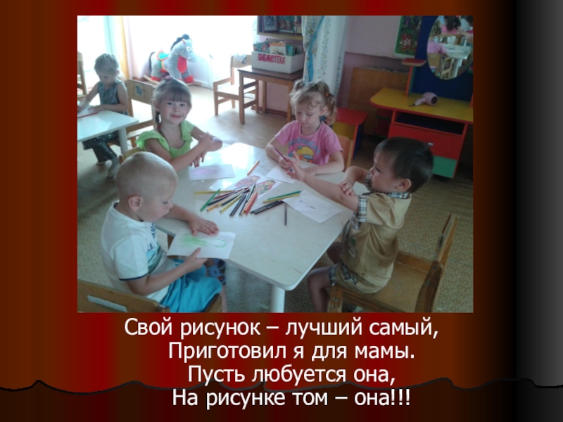 Слайд 20Свой рисунок – лучший самый, Приготовил я для мамы. Пусть любуется она, На рисунке