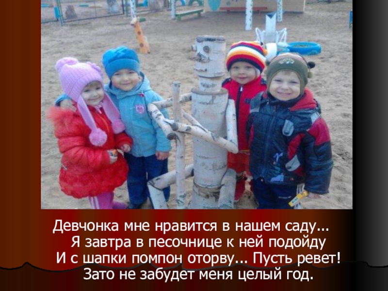 Слайд 5Девчонка мне нравится в нашем саду... Я завтра в песочнице к ней