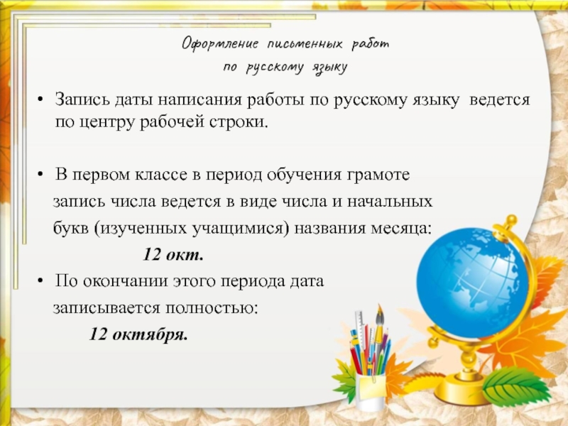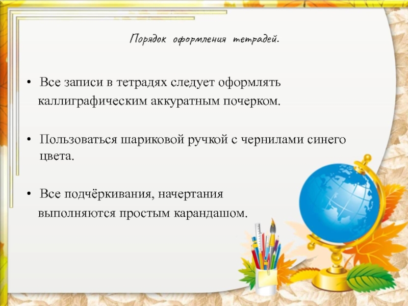 Все записи в тетрадях следует оформлять