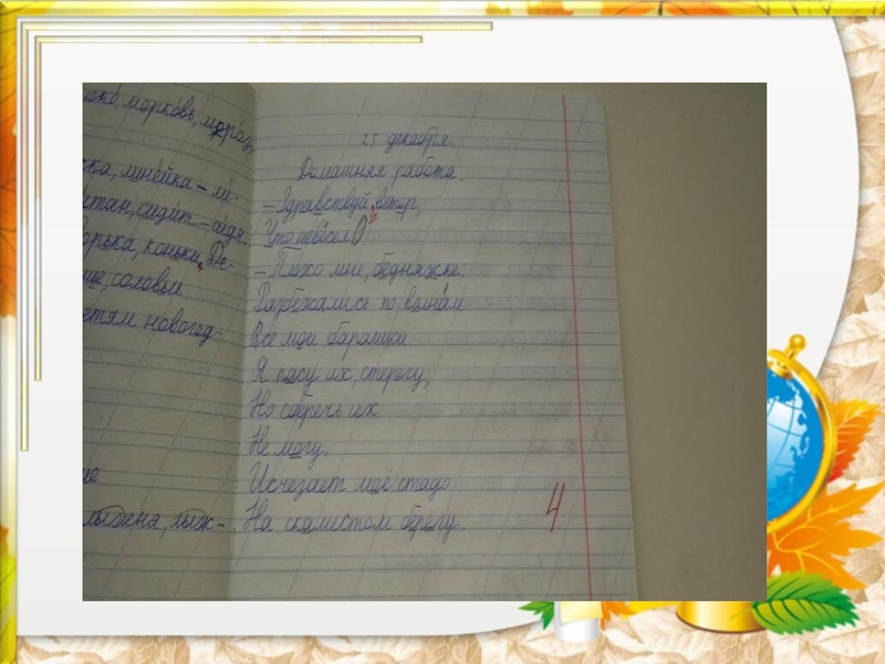 (вверху, сбоку, снизу страницы тетради).