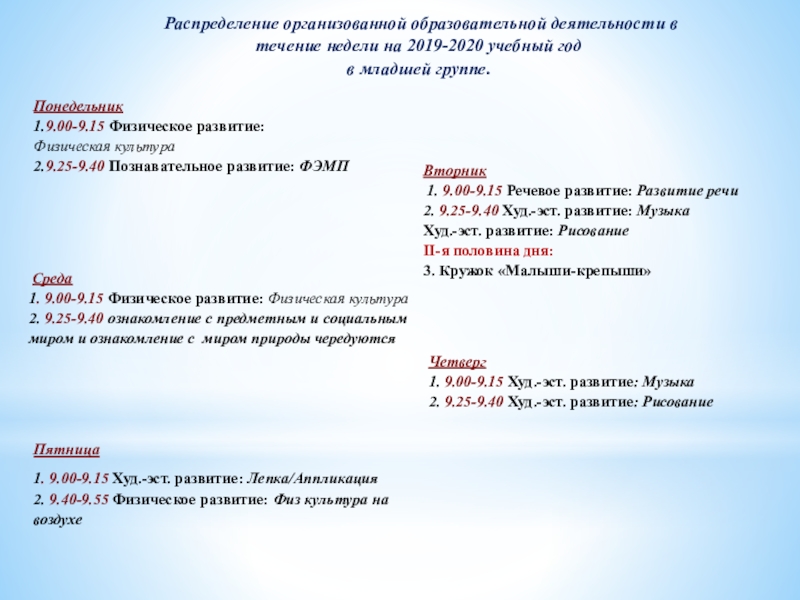 2. 9.40-9.55 Физическое развитие: Физ культура на воздухе