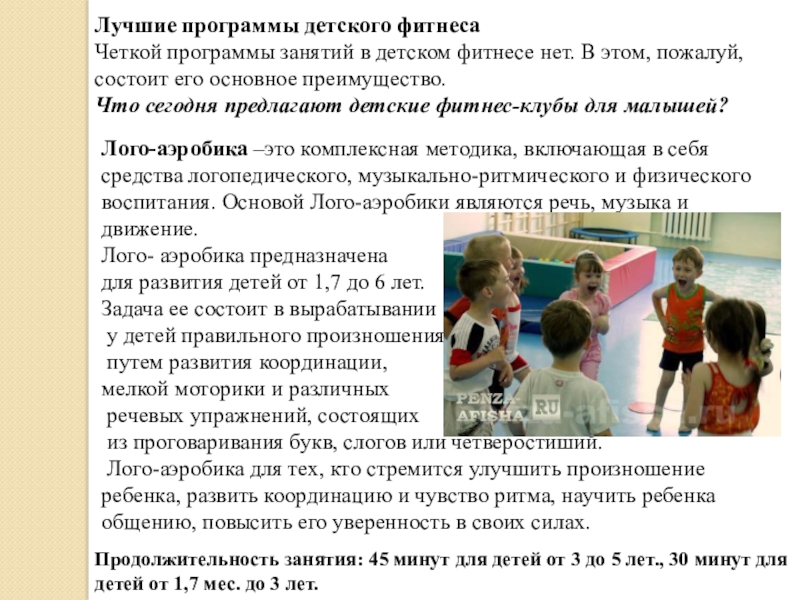 Лого-аэробика для тех, кто стремится улучшить произношение ребенка, развить координацию и чувство ритма, научить ребенка общению, повысить его уверенность в своих силах.
