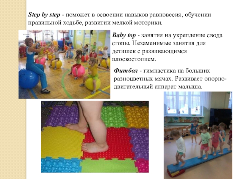 Фитбол - гимнастика на больших разноцветных мячах. Развивает опорно-двигательный аппарат малыша.