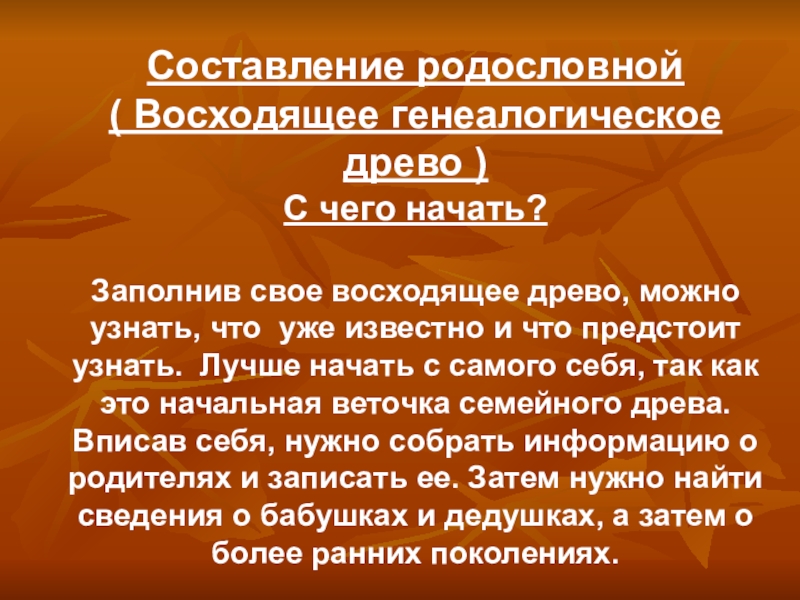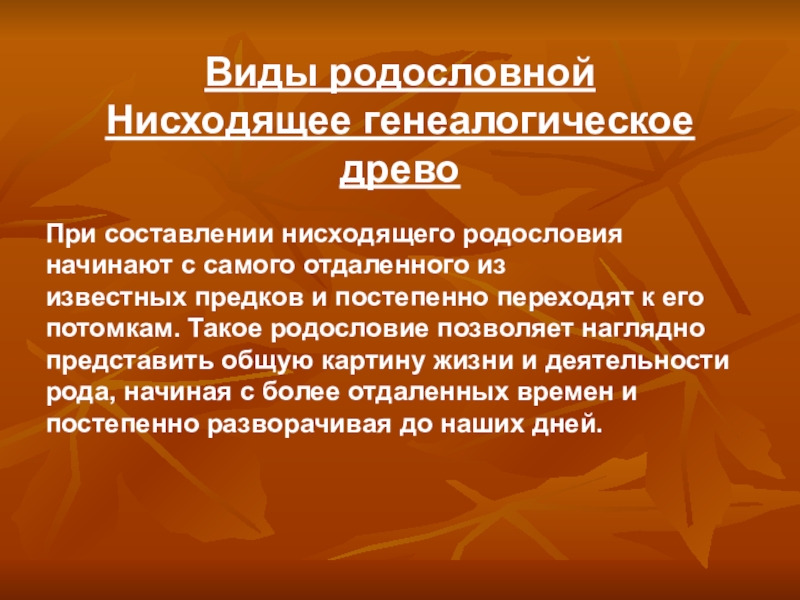 При составлении нисходящего родословия начинают с самого отдаленного