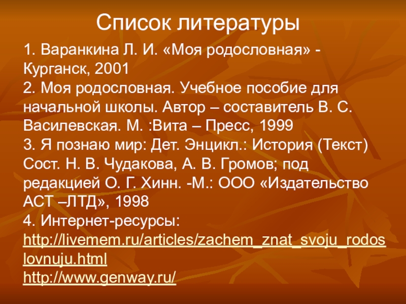 4. Интернет-ресурсы: http://livemem.ru/articles/zachem_znat_svoju_rodoslovnuju.html