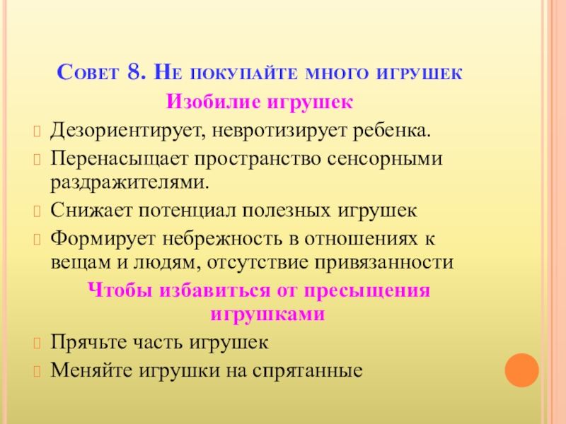 Слайд 17Совет 8. Не покупайте много игрушек