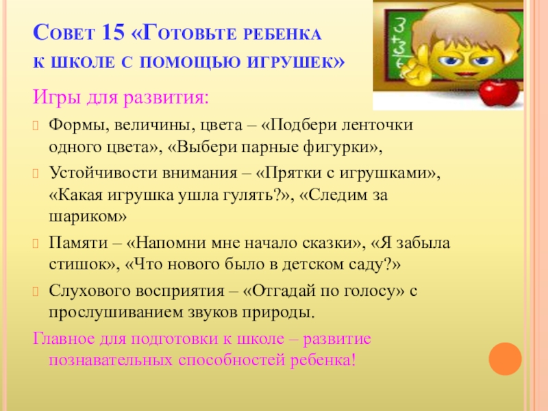 Главное для подготовки к школе – развитие познавательных способностей ребенка!