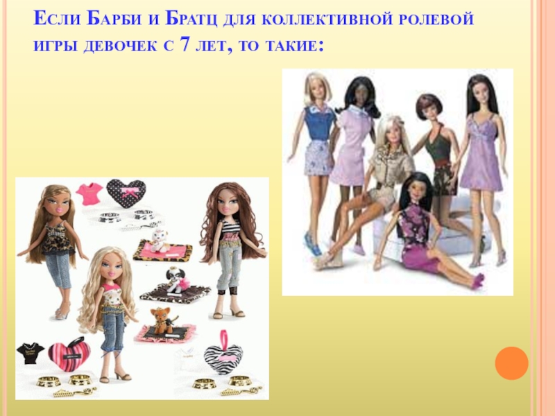 Слайд 12Если Барби и Братц для коллективной ролевой игры девочек с 7