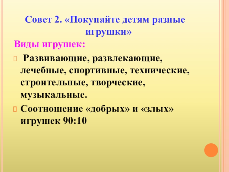 Слайд 4Совет 2. «Покупайте детям разные игрушки»