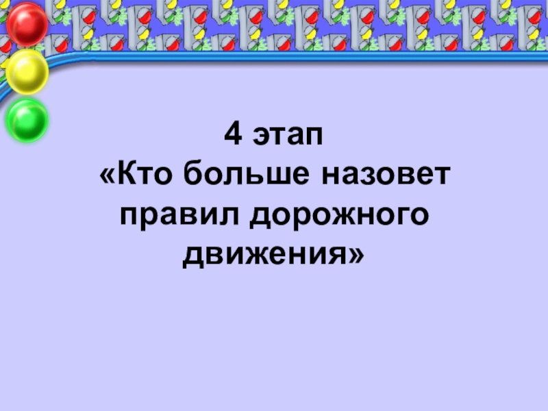 Слайд 224 этап «Кто больше назовет правил дорожного движения»