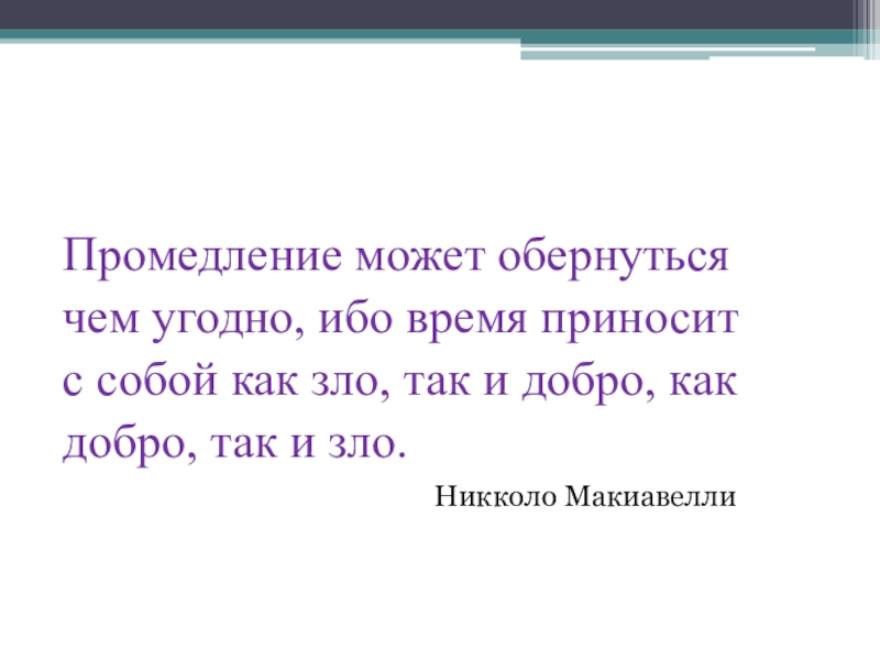 Промедление может обернутьсячем угодно, ибо время приноситс собой как зло, так и добро, какдобро, так и зло.
