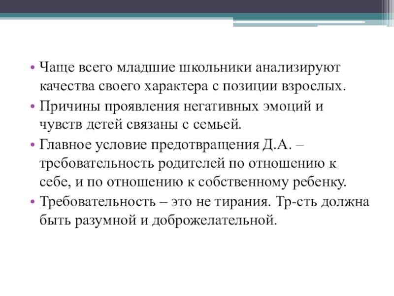 Чаще всего младшие школьники анализируют качества своего характера с позиции взрослых.Причины проявления негативных эмоций и чувств детей