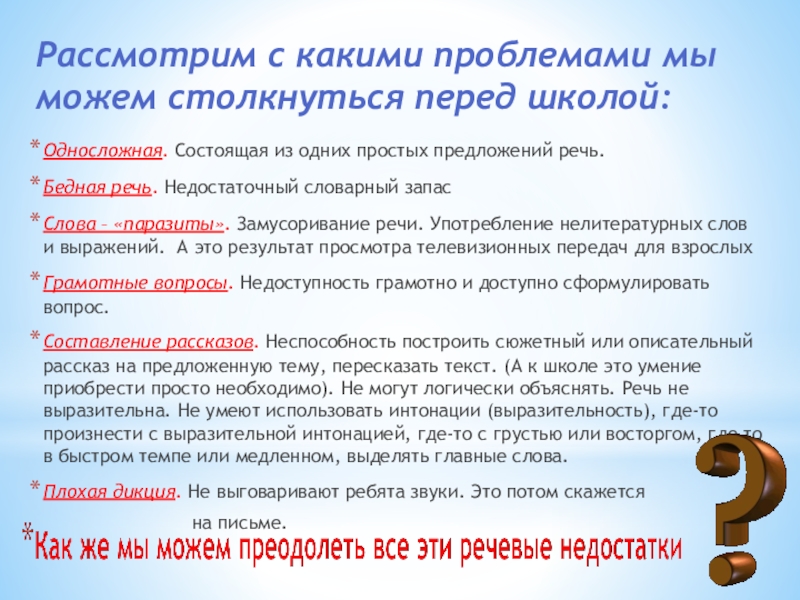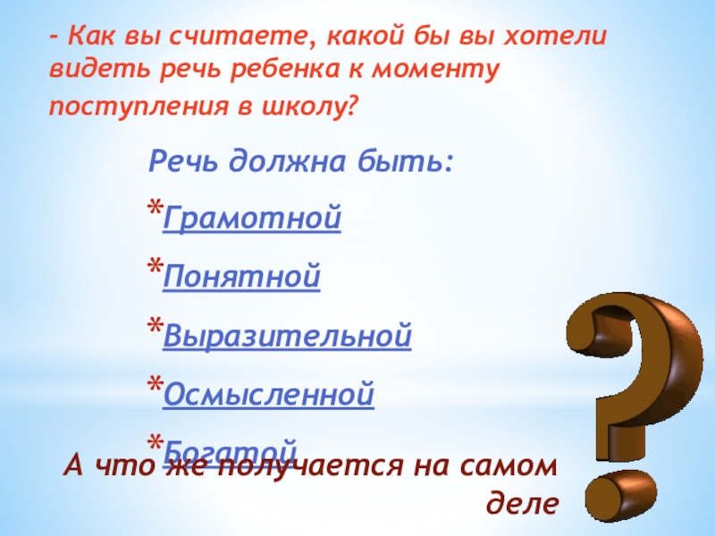 До школы осталось немного времени - 2 года. Все вы знаете, поступая в 1 класс, ребенок проходит собеседование, тестирование со школьным психологом, учителями. На что в первую очередь обращает внимание при этом: на речь ребенка, как рассуждает, объясняет, доказывает, как строит предложения, согласовывает ли слова в предложении, насколько богата, разнообразна речь ребенка.