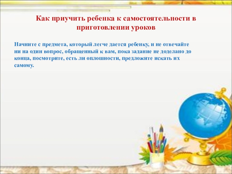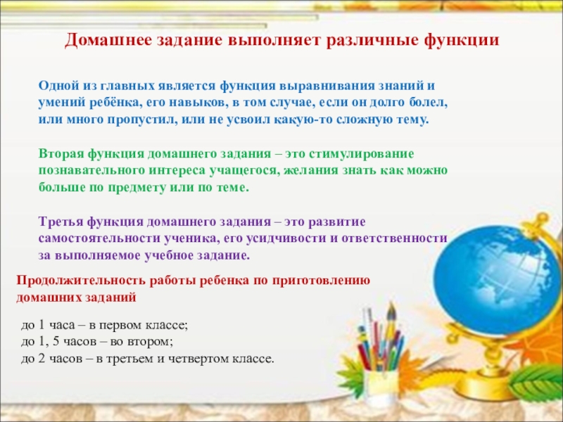 Продолжительность работы ребенка по приготовлению домашних заданий