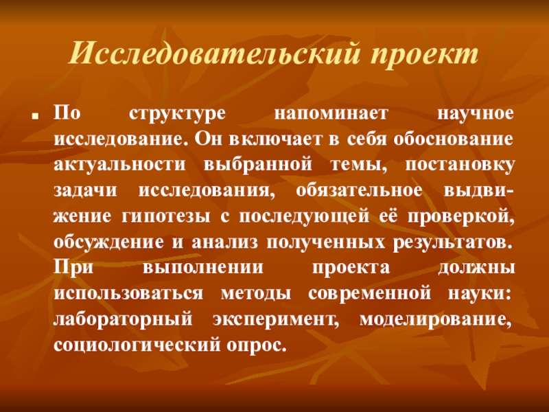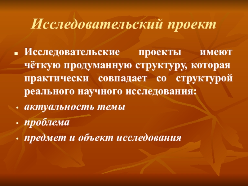 Исследовательские проекты имеют чёткую продуманную структуру, которая практически совпадает со