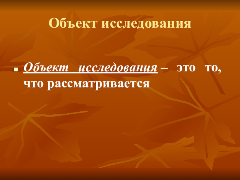 т.п.) рассматривается объект. Причём один и тот же объект исследования может быть предметом разных исследований, т.е. изучаться с разных точек зрения.