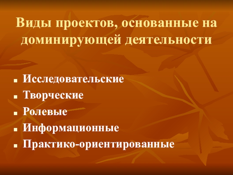 Данные проекты не имеют детально проработанной структуры совместной деятельности обучаемых. Это может быть стенная газета, сценарий праздника и т.п.