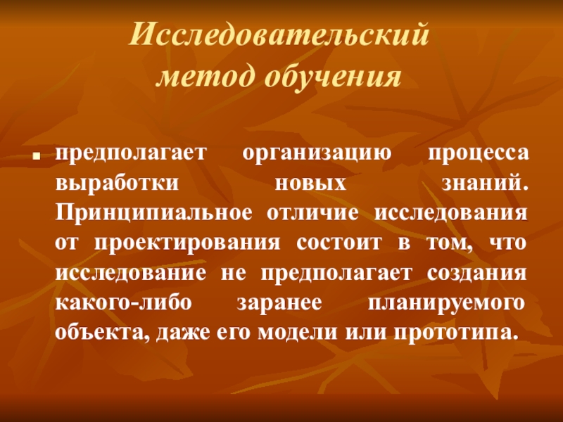 предполагает организацию процесса выработки новых знаний. Принципиальное отличие исследования