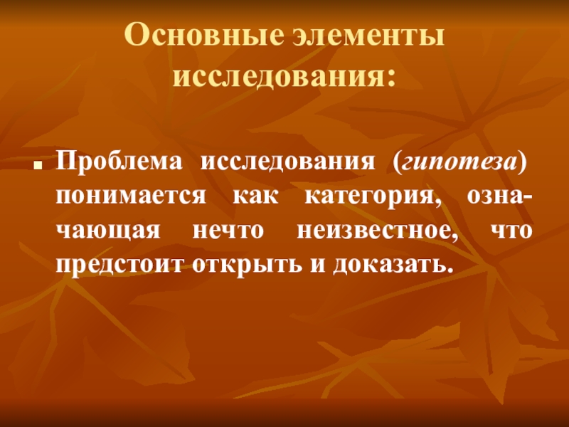 Проблема исследования (гипотеза) понимается как категория, озна-чающая нечто неизвестное,