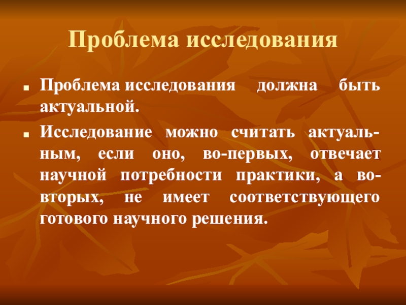Исследование можно считать актуаль-ным, если оно, во-первых,