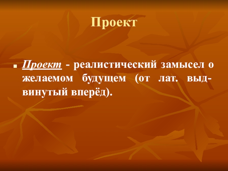 Проект - реалистический замысел о желаемом будущем (от лат. выд-винутый вперёд).