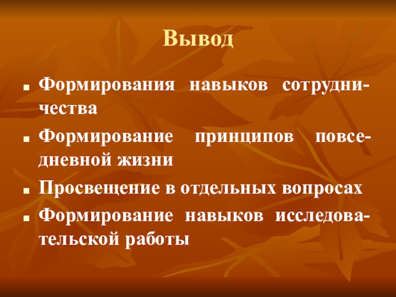в результате самостоятельных дей-ствий учащихся с обязательной презентацией этих результатов.