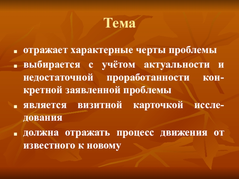 выбирается с учётом актуальности и недостаточной проработанности кон-кретной