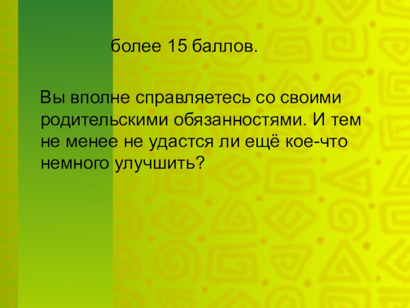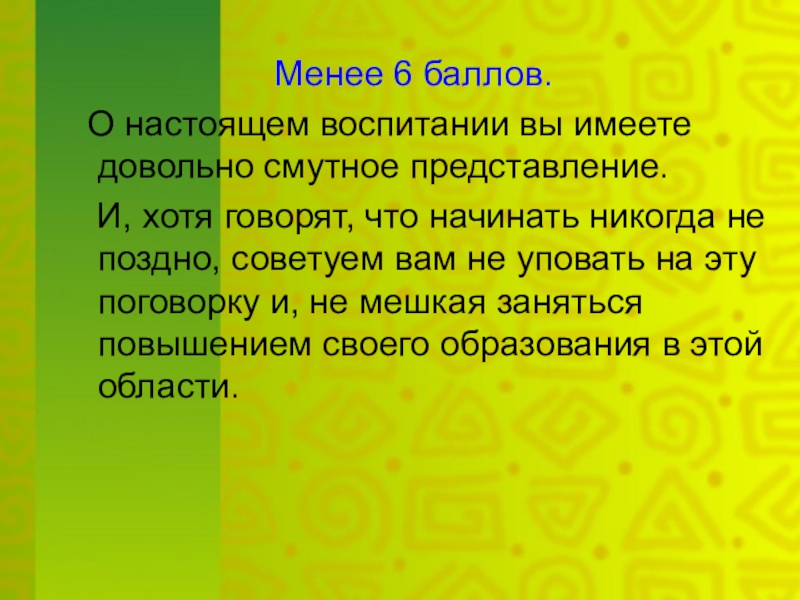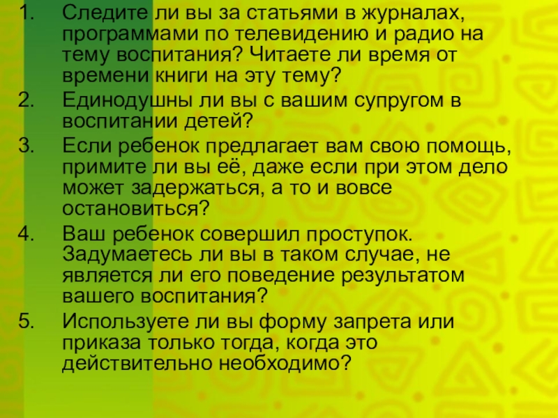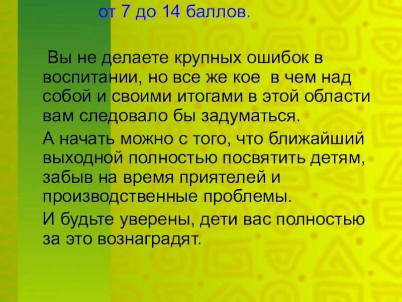 Вы не делаете крупных ошибок в воспитании, но все же кое в чем над собой и своими итогами в этой области вам следовало бы задуматься.