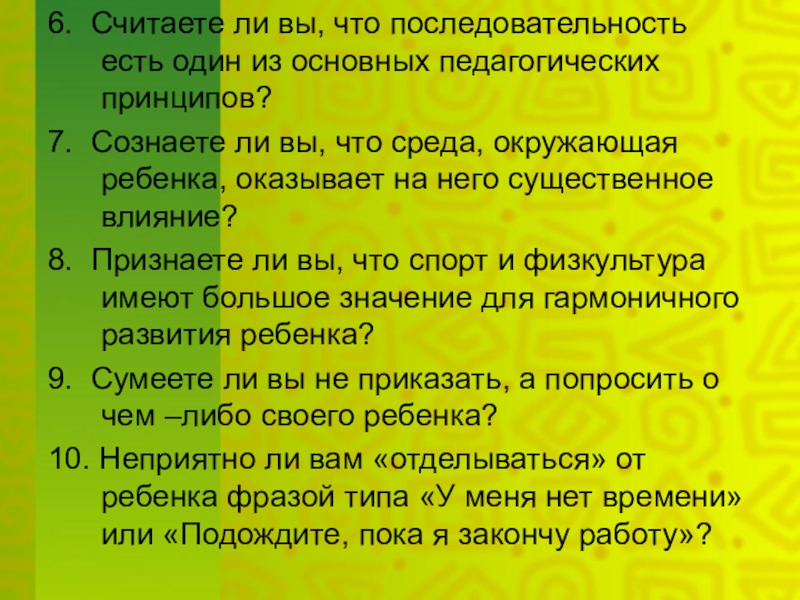 Слайд 96. Считаете ли вы, что последовательность есть один из основных педагогических