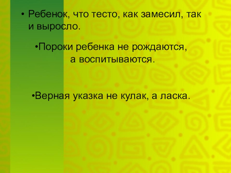 Слайд 2Ребенок, что тесто, как замесил, так и выросло.