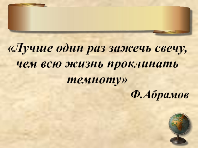 Слайд 5«Лучше один раз зажечь свечу, чем всю жизнь проклинать темноту»