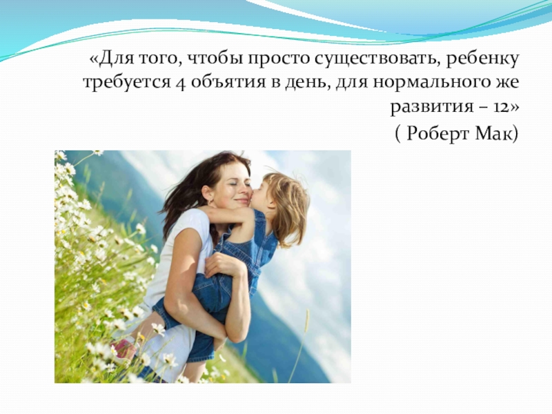 Слайд 9«Для того, чтобы просто существовать, ребенку требуется 4 объятия в день,