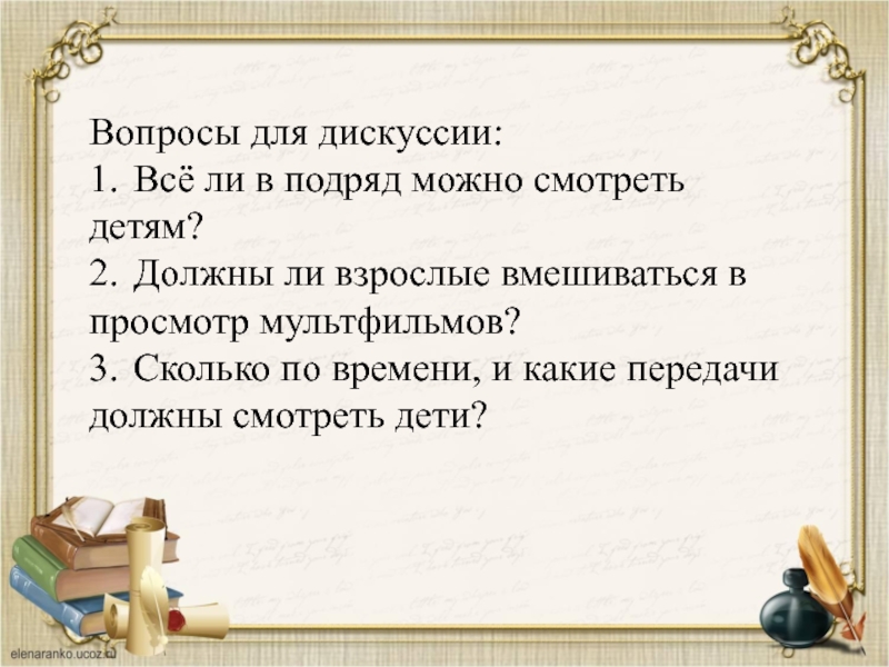 Слайд 2ТЕМА: «Роль мультфильмов в воспитании детей».