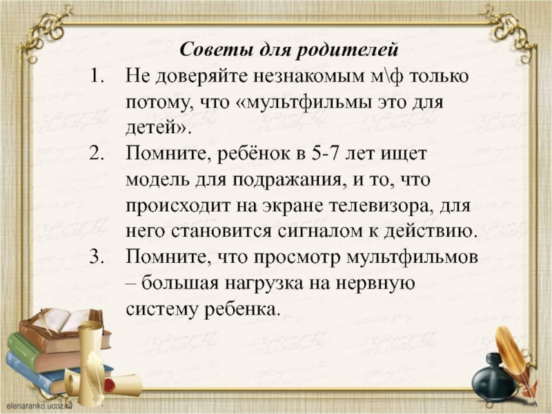 Помните, что просмотр мультфильмов – большая нагрузка на нервную систему ребенка.