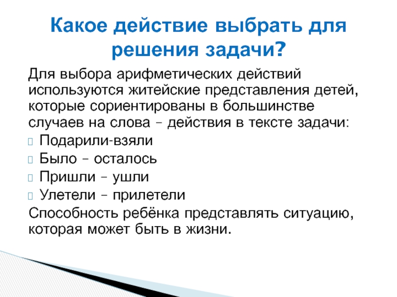 Какое действие выбрать для решения задачи?