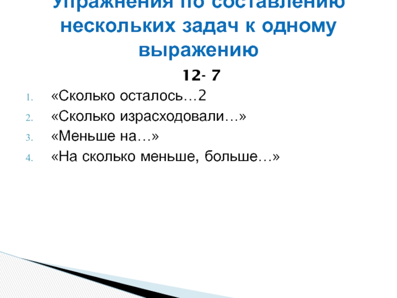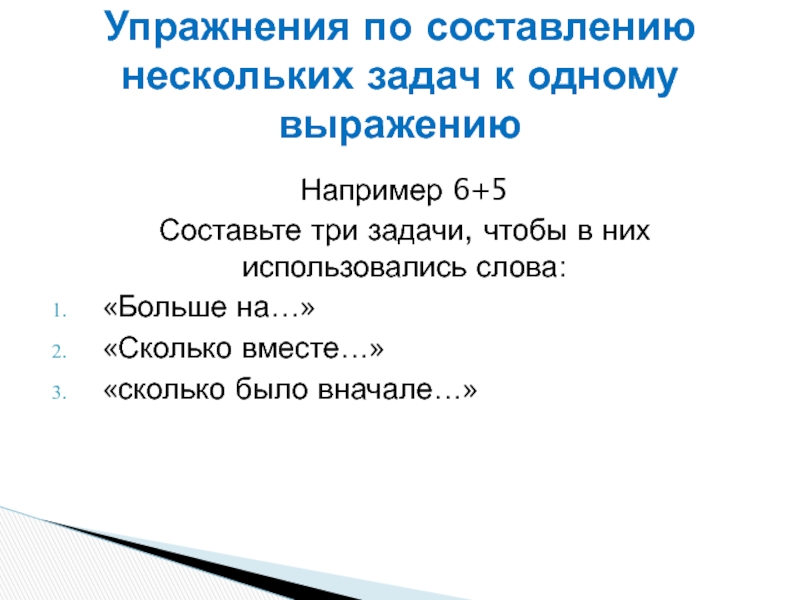 Упражнения по составлению нескольких задач к одному выражению