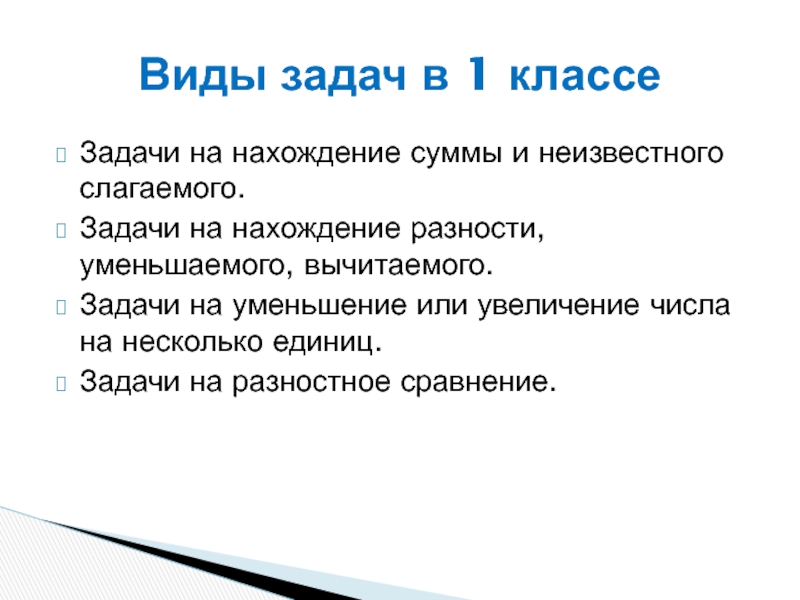Виды задач в 1 классе
