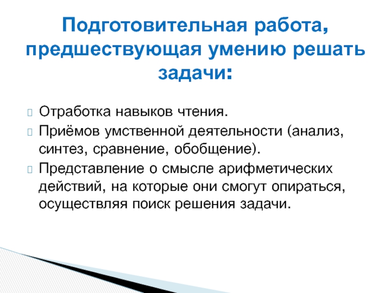 Подготовительная работа, предшествующая умению решать задачи: